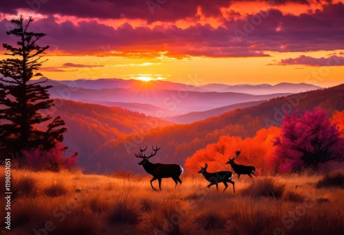 vibrant silhouettes picturesque sunrise backdrop showcasing rich colors scenic beauty early light, dawn, daylight, daybreak, dawnlight, dusk, environment