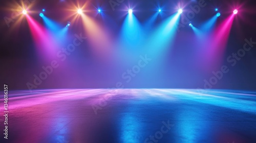 stage, light, lighting, colours, blue, pink, purple, neon, show, performance, concert, event, background, design, abstract, bright, high-coloured, glow, illumination, spotlight, beam, ray, scene, studio, dramatic, energy, intense, colourful, atmosphere, mood, dark, night, club, disco, party, festival, futuristic, modern, texture, shine