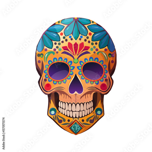 Vibrant Sugar Skull with Floral Designs Celebration of Day of the Dead