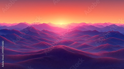 Vibrant sunset over a majestic mountain range, showcasing layers of purple and orange hues.