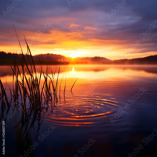 serene, solitude, visual, quiet, harmony, picture, mist, peaceful, tranquil, shadow, vibrant, artwork, fog, photo, sunrise, horizon, purple, dawn, photo, calm, image, scene, still, scenic, composition, morning, light, orange, sunset, cloud, sky, texture, detail, reed, yellow, beauty, colours, pink, lake, water, nature