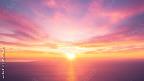 Vibrant sunset over ocean, aerial view, peaceful sky