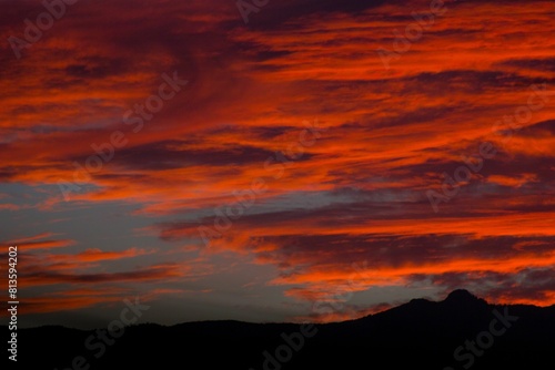 sunset, colours, red, cloud, sky, mountain, hill, nature, park, blue, cloudy