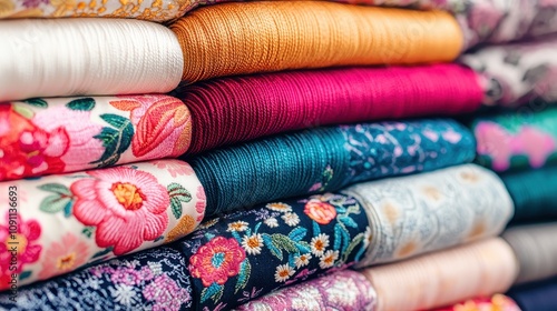 Vibrant textile display craft store product showcase indoor space close-up fabric artistry for home decor