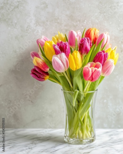 Vibrant Tulip Bouquet Spring Blooms in a Crystal Vase