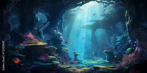 Vibrant underwater scene teeming with various fish species with space for copy, portraying an authentic underwater environment