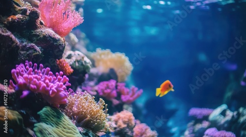 Vibrant Underwater Scene with Colorful Coral and Tropical Fish