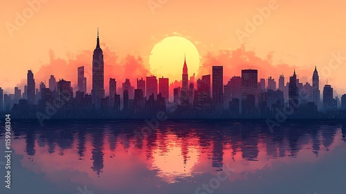 sunset, city, skyline, urban, water, evening, landscape, horizon, nature, dusk, peaceful, twilight, vibrant, serene, light, scenic, bright, cloud, architecture, calm, silhouette, building, city landscape, view, modern, sky, city landscape, skyscraper, sunrise, sun, building, night, downtown, panorama, cloud, travel, river, business, tower