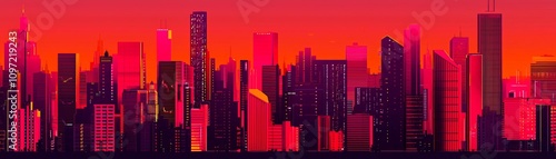 Vibrant urban sunset skyline cityscape digital art evening wide angle aesthetic appeal for modern living