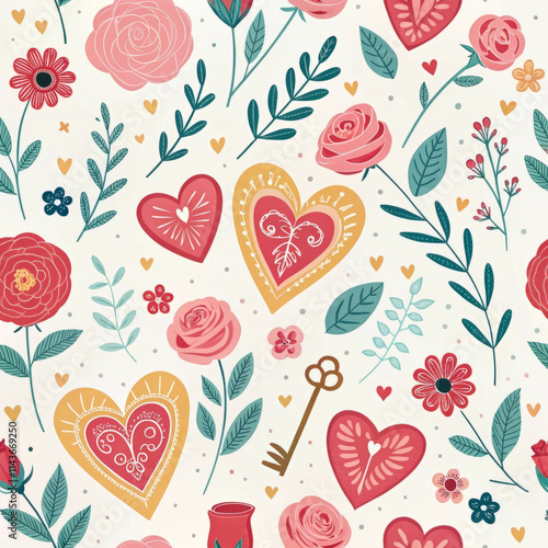 valentine, february 14, seamless pattern, rose, gift wrap, floral pattern