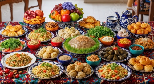 Vibrant vegan uzbek feast with traditional dishes and fresh ingredients