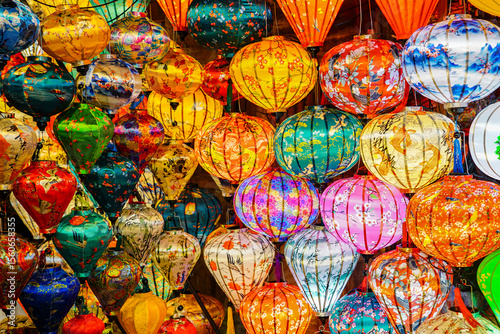 Vibrant Vietnamese silk lanterns light up the scene with dazzling color tradition, and culture charm