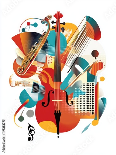Vibrant violin, cello and music notes in a dynamic color explosion
