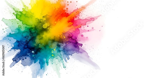 Vibrant Watercolor Explosion on White Background A Kaleidoscope of Rainbow Hues for Artistic Projects and Creative Designs High Resolution Image