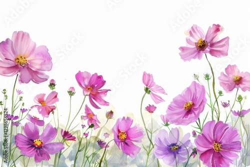 illustration, watercolor, flower, garden, spring, border, nature, paper, botanical, floral, plant, pink, art, flower petals, blossom, watercolor, flower field, colourful, painting, purple, spring flower, transparent, graphic, cosmos, daisy, field, isolate, outdoors, vibrant, dahlia, bloom, hand-painted, geranium, anemone, aster, anther, asteraceae
