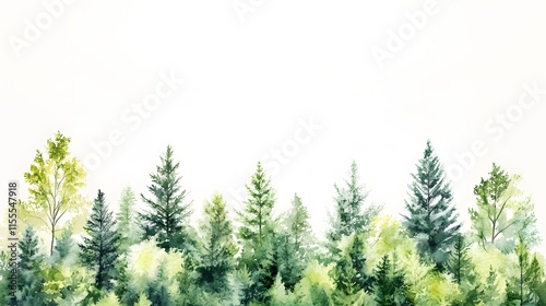Vibrant Watercolor Forest Landscape with Lush Green Trees and Soft Color Palette Ideal for Nature-Themed Designs, Backgrounds, and Art Projects