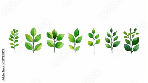 Vibrant watercolor illustration showcasing an array of garden herbs, leaves, and branches against a clean white backdrop.