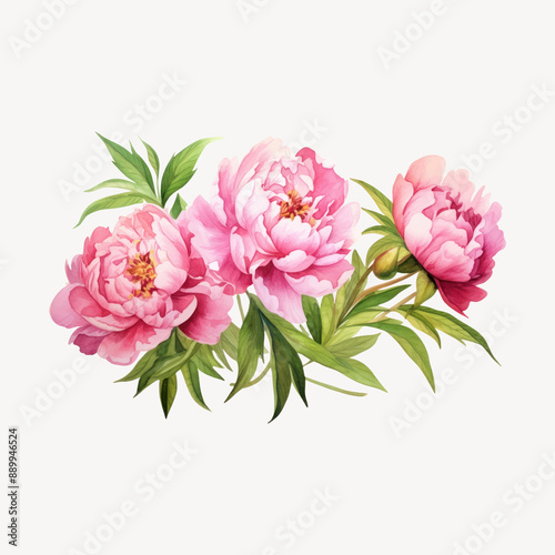 floral arrangement, illustration, watercolor, botanical, delicate, painting, blossom, bouquet, vibrant, dahlia, floral, flower, leaf, nature, vector, green, peony, plant, pink, rose, art