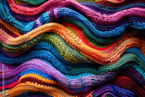 knit up, fabric, colourful, vibrant, texture, pattern, wool, threaded, wave, textile, craft, hand-made, cosy, warm, artistic, design, many-coloured, stripes, woven, creative, detailed, intricate, soft, bright, cheerful, rainbow, layer, hobby, bricolage, needlecraft, craftsmanship, home decor, fashion, garment, knitting needle