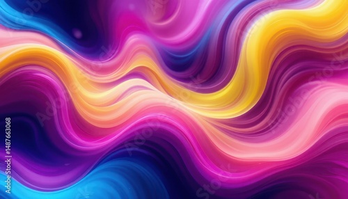 Vibrant Wavy Lines Abstract Art Fuchsia, Yellow, and Blue Swirls