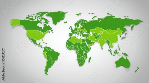 Vibrant world map featuring green continents highlighting ecological awareness and sustainable development goals
