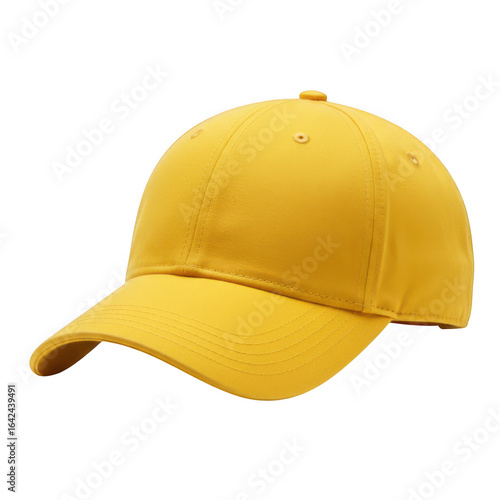 Vibrant yellow baseball cap for sun protection isolated on transparent background