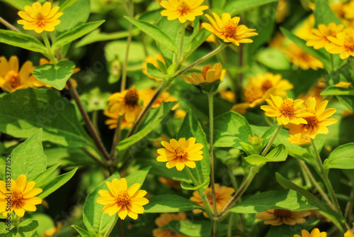Vibrant Yellow Flowers: A Sunlit Garden Scene of Delicate Blooms