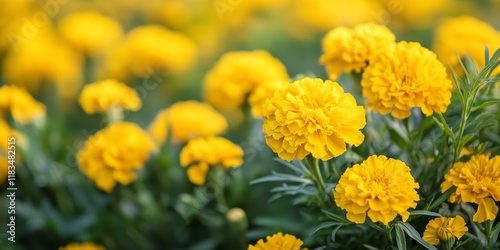 Vibrant yellow marigold flowers bloom across a field, creating a stunning display of yellow marigold flowers that brighten the landscape, showcasing the beauty of nature s yellow marigold flowers.