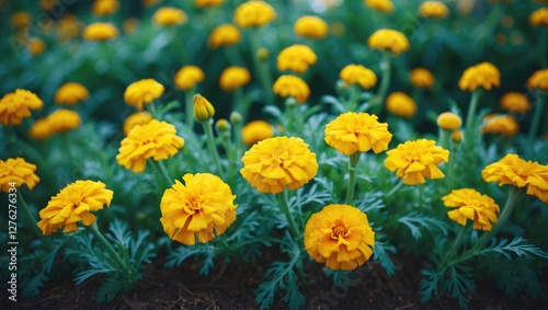 marigold, flower, yellow, bloom, vibrant, nature, foliage, green, background, summer, garden, design, floral, display, bright, flower petals, beauty, decor, plant, growth, landscaping, seasonal, blossom, calmness, sunshine, scenery, colourful, arrangement, cultivation, gardenia, freshness, lovely, cheerful, botanical, aesthetic, blooming, contrast, natural, horticulture, love, serenity, elegant, picturesque, high-coloured, summer