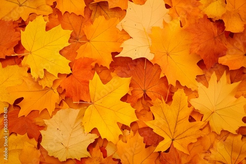 Vibrant yellow, orange leaves scattered, capturing essence of autumn.