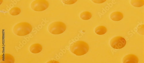 Vibrant yellow Swiss cheese on a textured backdrop showcases its distinctive large-hole structure