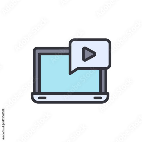 icon, coloured, outline, simple, minimalist, solid, thin, line, stroke, creative, colourful, style, modern, detailed, transparent, isolated, illustration, symbol, web, video, vector, media, digital, business, multimedia, technology, cyberspace, play, player, motion picture, record, film, communication, television, streaming, live, social, element, entertainment, content, cinema, laptop, device