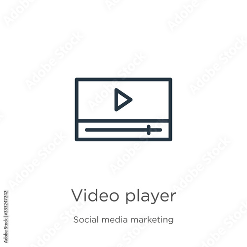 Video player icon. Thin linear video player outline icon isolated on white background from social media marketing collection. Line vector sign, symbol for web and mobile