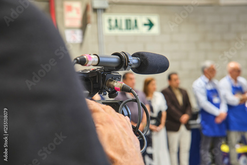 interview, visual, microphone, press, audience, businessperson, news, skill, conference, sound, presentation, production, occupation, career, media, sharpened, job, event, corporate, indoor, professional, journalism, image, broadcasting, audio, reporting, storytelling, chef, recording, work, communication, cameraman, industry, camcorder, technology, documentary, filming, blurred background, equipment, videographer