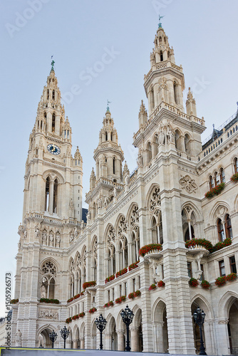 Vienna's 18th century town hall building close-up. An old Gothic-style building in Vienna, Austria