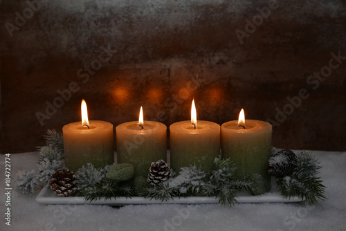 fourth, advent, 4, candle, 4, christmas, advent, firbranch, decoration, snow, christmas bauble, christmas decoration, christmas card, winter, tap, arrangement, light, candlelight, candlelight, flames, burn, greeting card, greeting card, christmas decoration, chaplet, floristic, dark, christmassy, festive, solemn, romantic, heat, mood, pensive, wintery, wintery, traditional, elegant, green, white