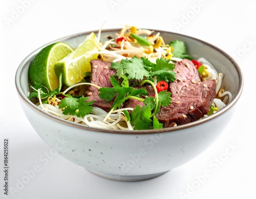 pho, beef, coriander, lime, asian, close-up view, release, soup, slight, healthy, aromatic, dinner, dinner, authentic, epicure, generous, top, modern, leaky, decorative, aesthetic, protein, presentation, vegetable, enjoyment