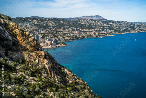 View from Ifach Rock to the sea, la Fossa beach and Calpe apartment buildings