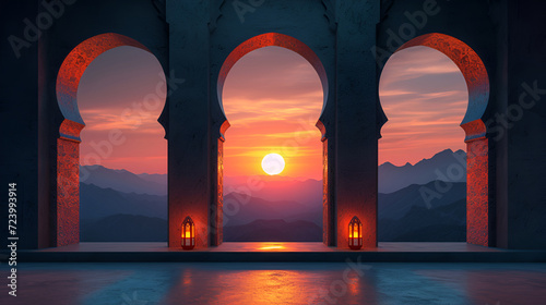 ramadan, arabic, mosque, interior, arch, evening, sunset, background, moon, night, window, muslim, arab, religion, eid, allah, month, faith, islam, oriental, eastern, celebration, arabian, tradition, holy, islamic, religious, pray, culture, traditional, fasting, holiday, greeting, card, architecture, decoration, archway, tour tourism, building, asia