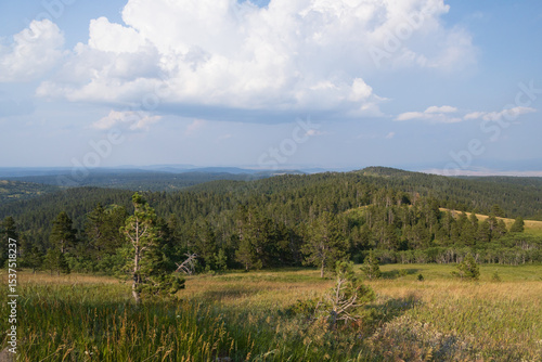 view, wyoming, overlook, mountainous, blue skies, white cloud, forest, landscape, sky, countryside, rural, outdoors