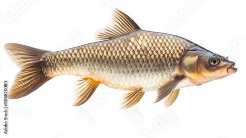 view highlights the distinct features of a Silver Carp revealing its scales body shape and fins. The fishs intricate details are showcased in isolation.