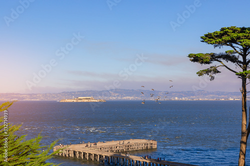 View of Alcatraz Island in San Francisco, USA. (once a federal prison now a museum)