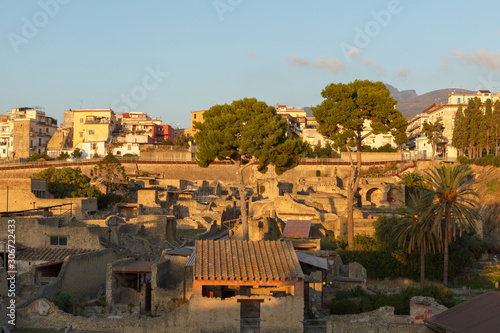 View of ancient Ercolano (Herculaneum) city ruins.