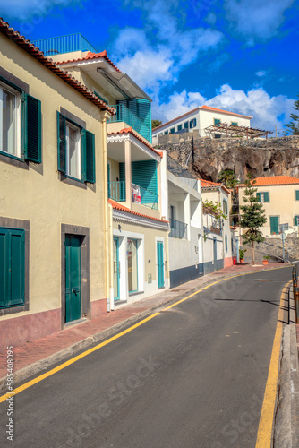 view of Camara de lobos city center, Madeira, Portugal on sunny winter day in february