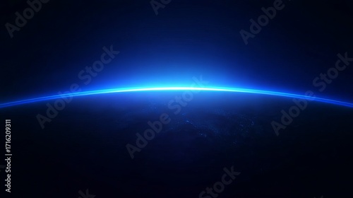 View of Earth's horizon from space with a glowing blue atmospheric glow against the darkness of space