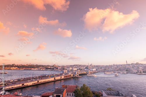 View of Galata Bridge of Istanbul. This bridge is in estuary ( armlet, firth ). The bridge is connecting Karakoy borough and Eminonu borough. Istanbul is one of the biggest cities in the world.