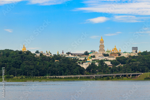 View of Kiev Pechersk Lavra (Kiev Monastery of the Caves) and the Dnieper river in Ukraine