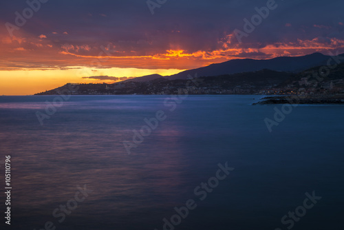 View of Ligurian Riviera (Santo Stefano al Mare) at sunset