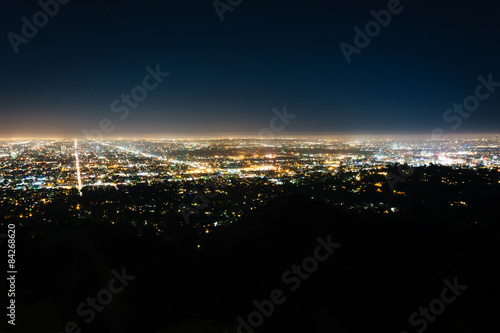 View of Los Angeles at night, seen from Griffith Observatory, in