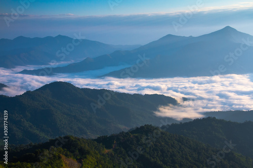 mountain, landscape, mountain, sky, nature, blue, view, fog, cloud, hill, forest, morning, alps, mist, cloud, panorama, summer, peak, misty, snow, hill, green, sunrise, travel